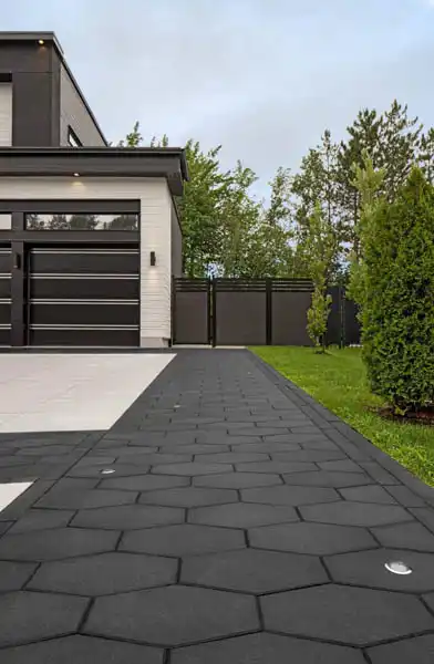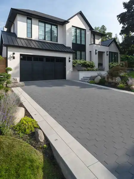 Hexa 100 is a geometric paver with an HD2 smooth finish, rich colors, and 100mm strength—ideal for driveways, parking, patios, walkways, pool decks, and courtyards.