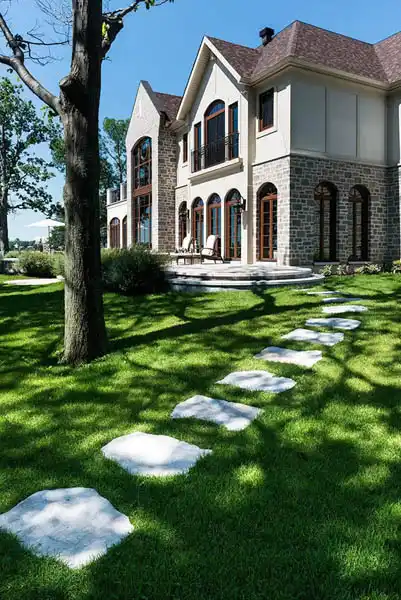 Maya Slab is a decorative slab with an HD² Slate texture, ideal for garden paths and lawn walkways.