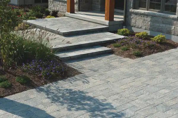 Ridgefield Plus offers modern engineering and incredible versatility. Dynamically textured for a look of hand-chiselled stone, this 70mm (2.76”) durable paver is ideal for high-traffic areas such as driveways, patios, and walkways.