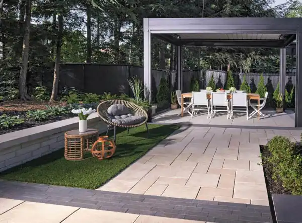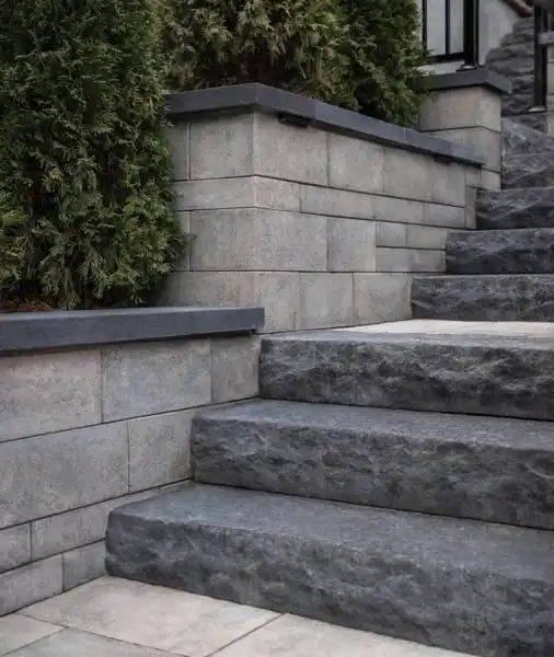 The Vario® wall, the wall that does it all. Place a block unit, slide another one over it, and so on. This results in a modern wall with clean lines. Versatile and innovative, this product can be used for retaining walls, creating privacy spaces and outdoor kitchens. Available in two heights (90 or 180 mm), the Vario wall is perfect for steps and modular installations. Note that all units are double-sided, and that they are all (including corner units) on the same pallet. Their popular colours fit perfectly with Permacon’s numerous cappings.